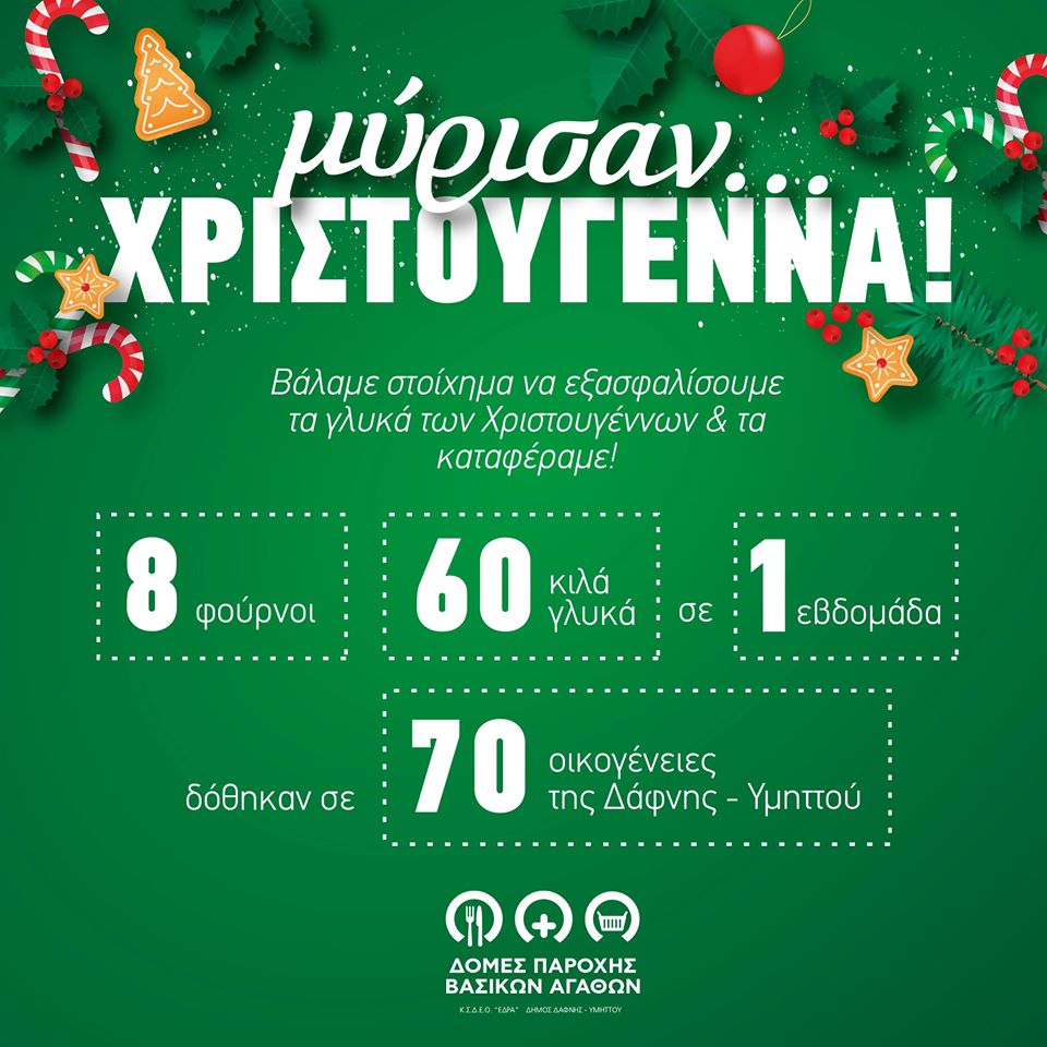 Μέσα σε 1 μόνο εβδομάδα συγκεντρώθηκαν 60 κιλά γλυκά από 8 φούρνους, τα οποία δόθηκαν σε 70 οικογένειες της Δάφνης - Υμηττού.